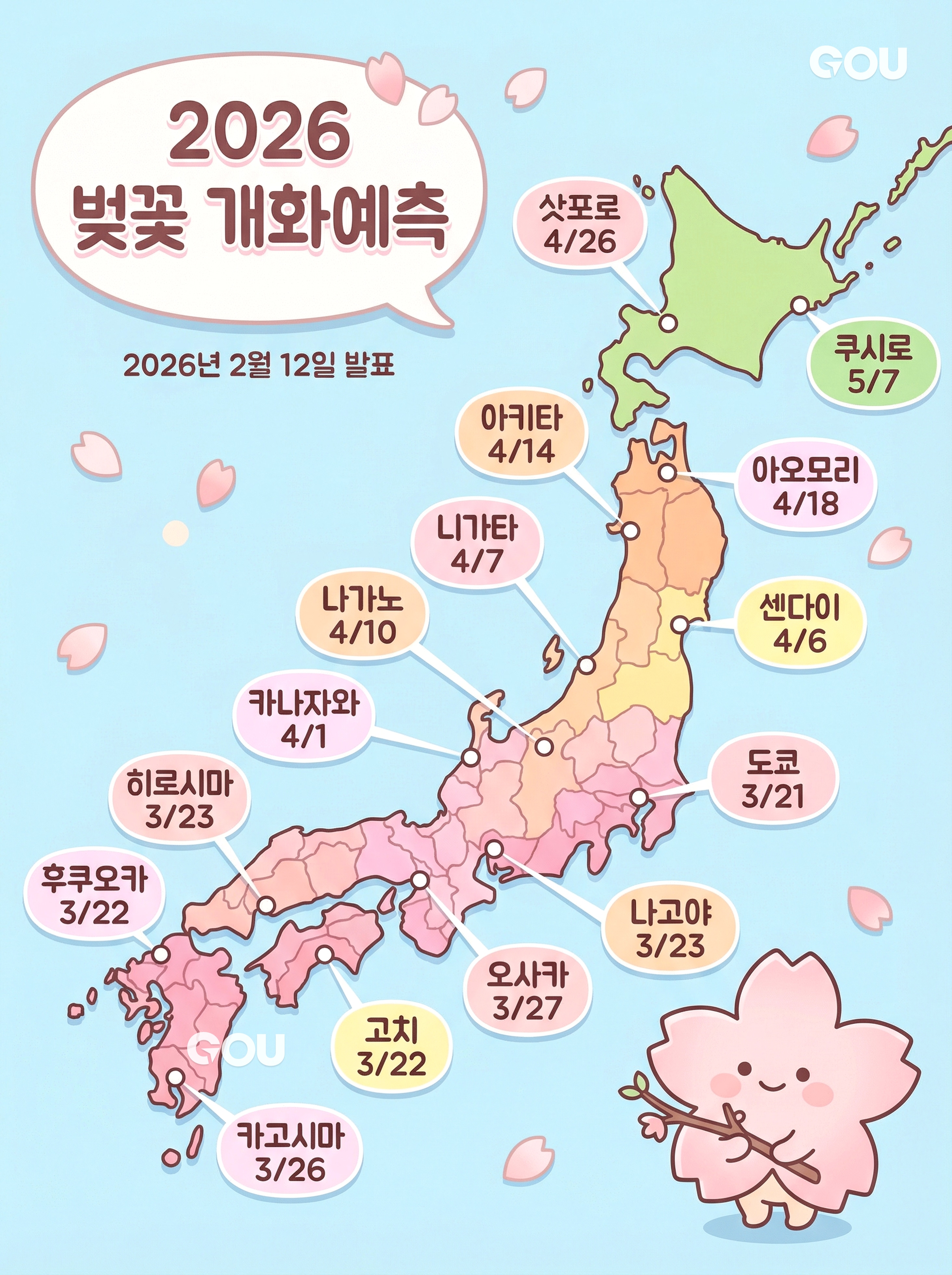 <GOU Pick. 일본 벚꽃 시즌 개화 예정 시기 모음>